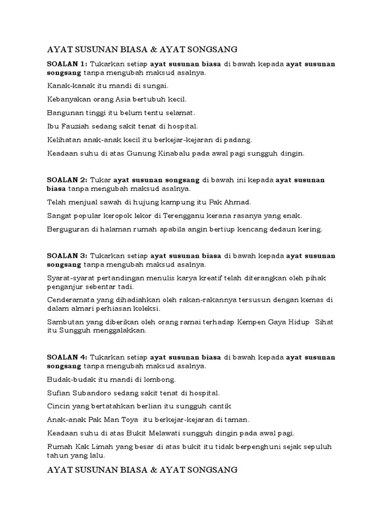Bahasa melayu tingkatan 1 2 dan 3 sintaksis ayat susunan biasa ayat susunan songsang latihan pengukuhanfor educational purpose only. Latihan menukarkan ayat biasa kepada ayat songsang (1).docx from bm 012 at mrsm. Captcha image of text used to distinguish humans from robots. 10000 keputusan untuk latihan ayat biasa ayat songsang.